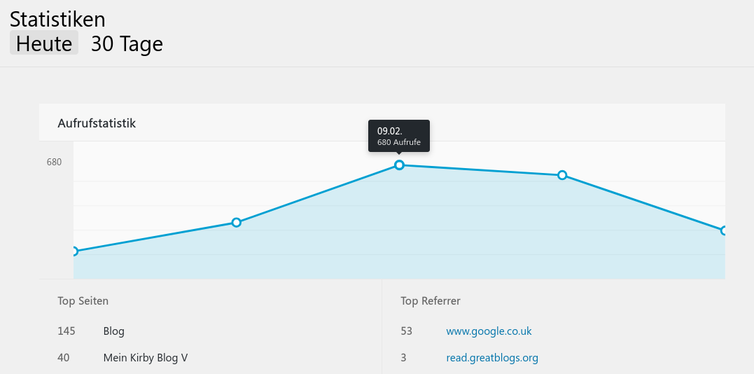 Mein Blog hat jetzt auch eine neue Statistik. Dafür habe ich mich vom Wordpress Plugin Statify inspirieren lassen.